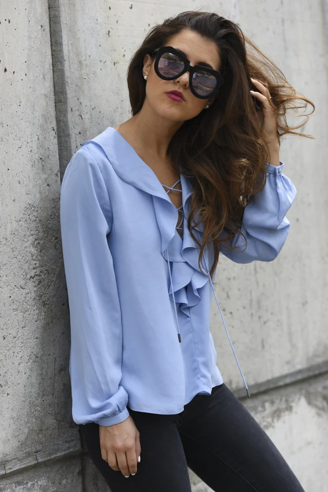 Tercero, el color. Azul es sin duda de mis favoritos. Creo que negrom, blanco y azul son mis tres principales opciones para blusa, y este tono, me encanta.