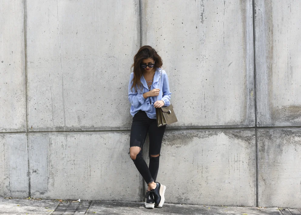 Sobre el resto del outfit ya lo conocen... mis jeans negros favoritos (Que aprietan lo necesario para que la pierna y pompa se vea bien), mis tenis/zapatos/plataformas favoritos también... y obviamente lentes y bolsa grandes (ya me conocen, jaja).