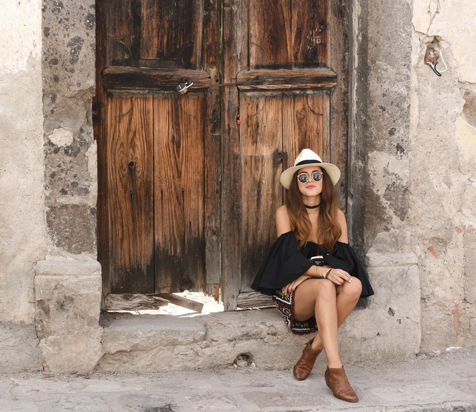 As I always write here, there are no absolute rules in fashion (other than those stated by etiquette), but in such a colorful town as San Miguel, I decided to go with black for the day... and it turns out that I loved it. I matched the shirt with this colorful zara skirt (I blogged it before) and a little black bag. The hat, I got it at a local cigar shop, hehe, and the booties, well, they're about three years old now, and they're still rockin' the streets.